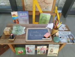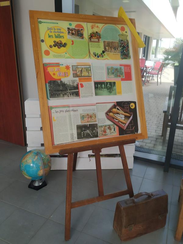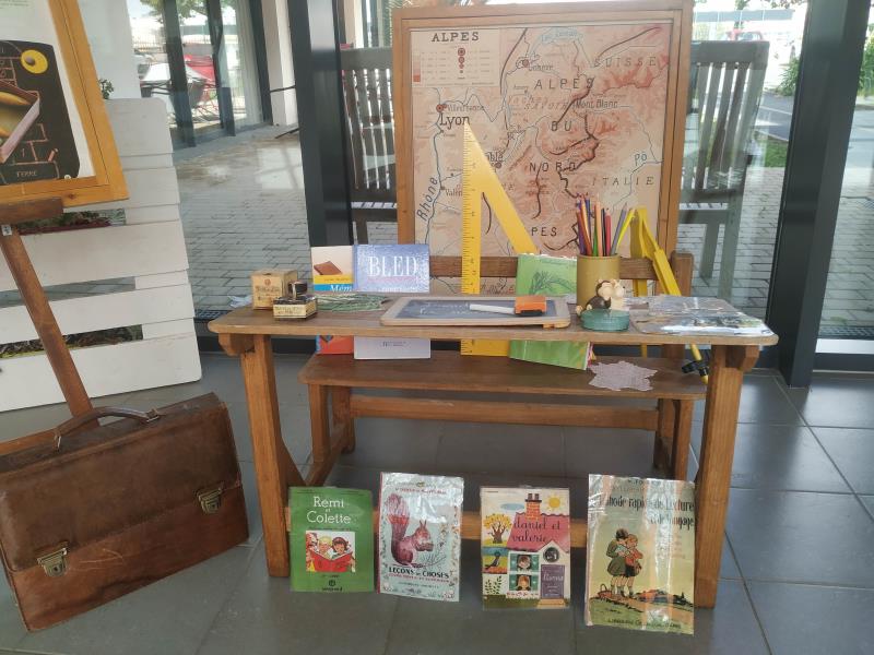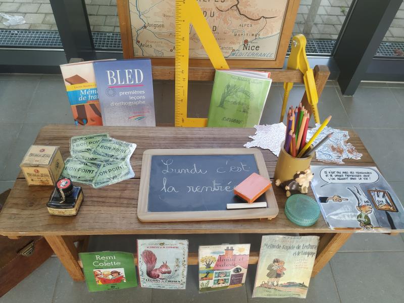 Anne-Catherine a ramené des touches de nostalgie avec des affiches colorées, de vieilles cartes de géographie, un bureau d’école, un vieux cartable, un globe, des livres, et des fournitures scolaires invitant les résidents à se remémorer leurs propres années d’études.
