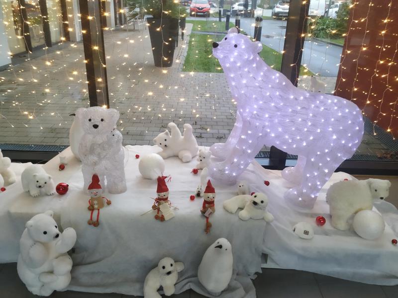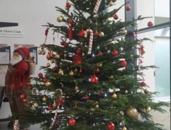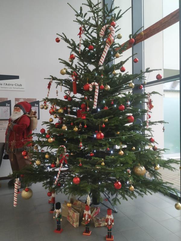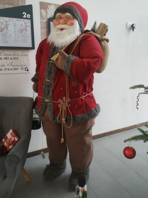 La magie de Noël a opéré avec un hall d'accueil méconnaissable : canapés, fauteuils ont été momentanément mis de côté pour laisser la place à un immense sapin de Noël rouge et doré, des casse-noisettes au pied du sapin et un gros père Noël au sourire débonnaire accompagné d'ours et oursons lumineux sur une banquise.