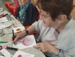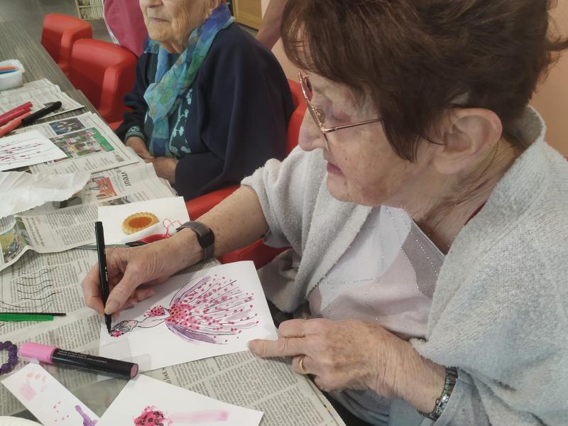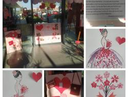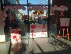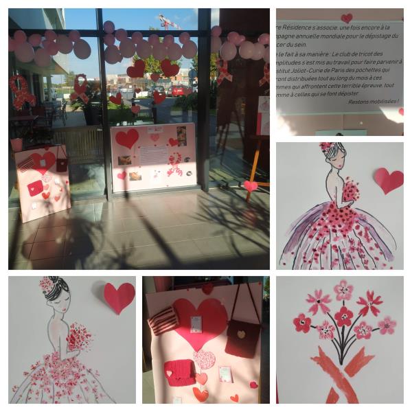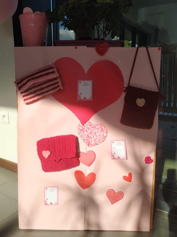Les résidentes ont aussi décoré le hall d'entrée avec des coeurs roses de tailles différentes ainsi que l'exposition de leur peinture sur cette thématique.