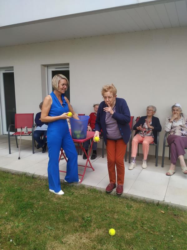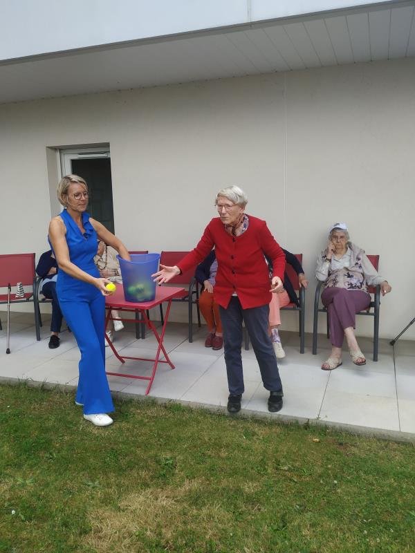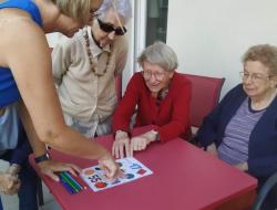 Des épreuves de lancers (balles de tennis, palets, chamboule-tout, molkky), de mémoire immédiate et de scrabble préparées avec soin par Anne-Catherine se sont déroulées dans la bonne humeur et sans que l’esprit sportif ne déserte l’air de jeux.