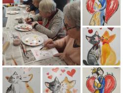 Les résidents ont eu le plaisir de peindre les amoureux de Peynet ou un couple de chats pour la Saint Valentin.