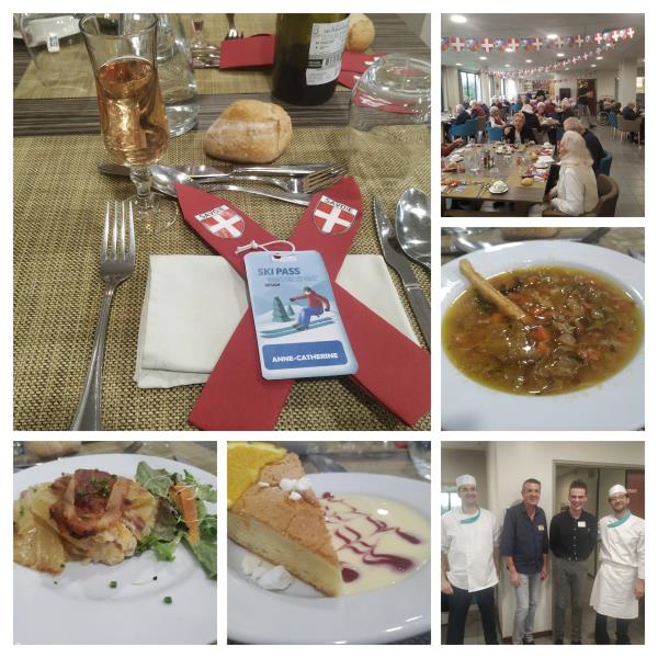 Sur des tables décorées aux couleurs de la région avec comme thématique « sport d’hiver » : des skis en guise de serviettes et un forfait en marque-place, nous avons eu droit à un repas que nous avons tous apprécié.